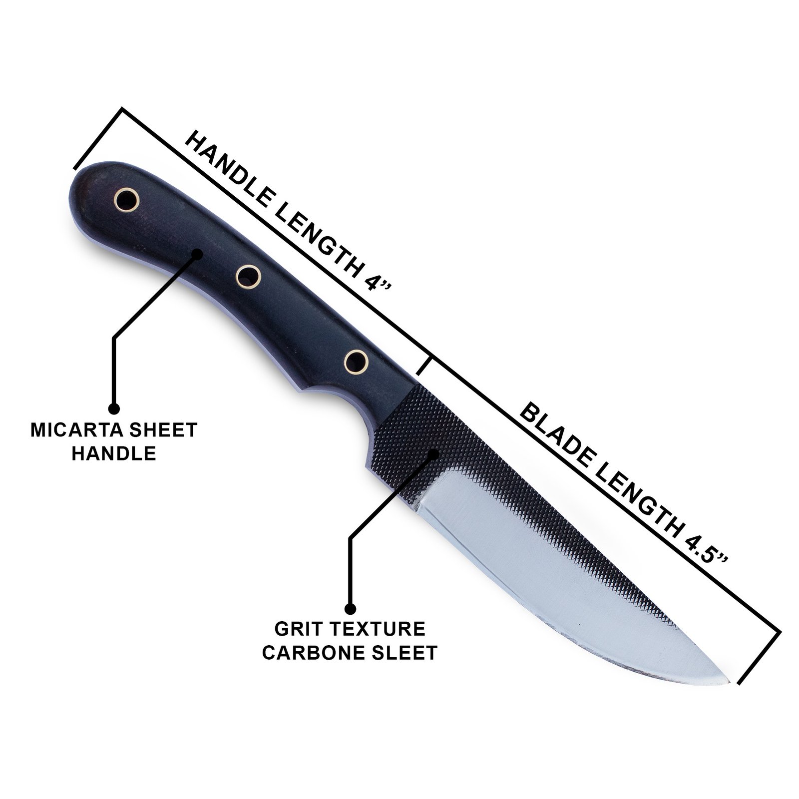 Handmade RASP Steel Fixed Blade Knife | Micarta Handle | Grit Texture Carbon Sleet | Leather Sheath Included