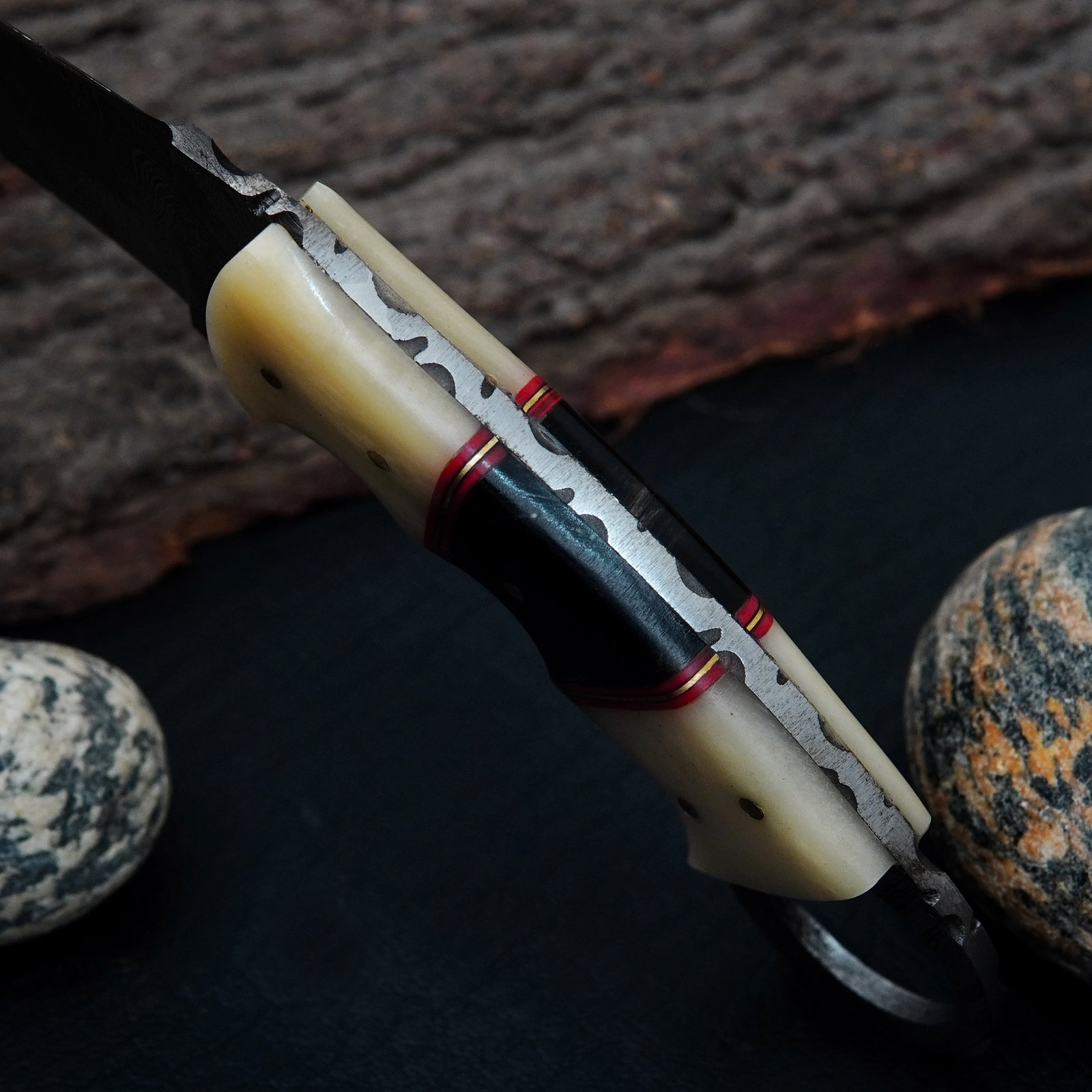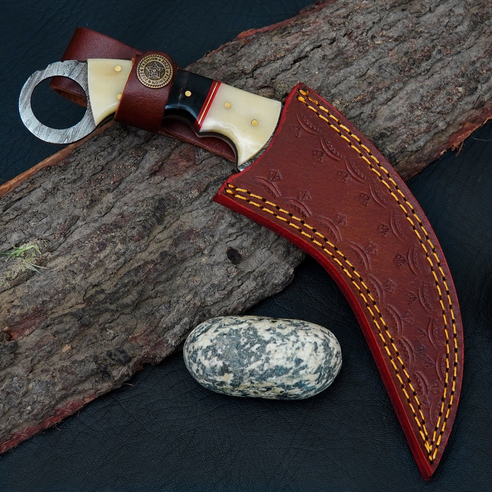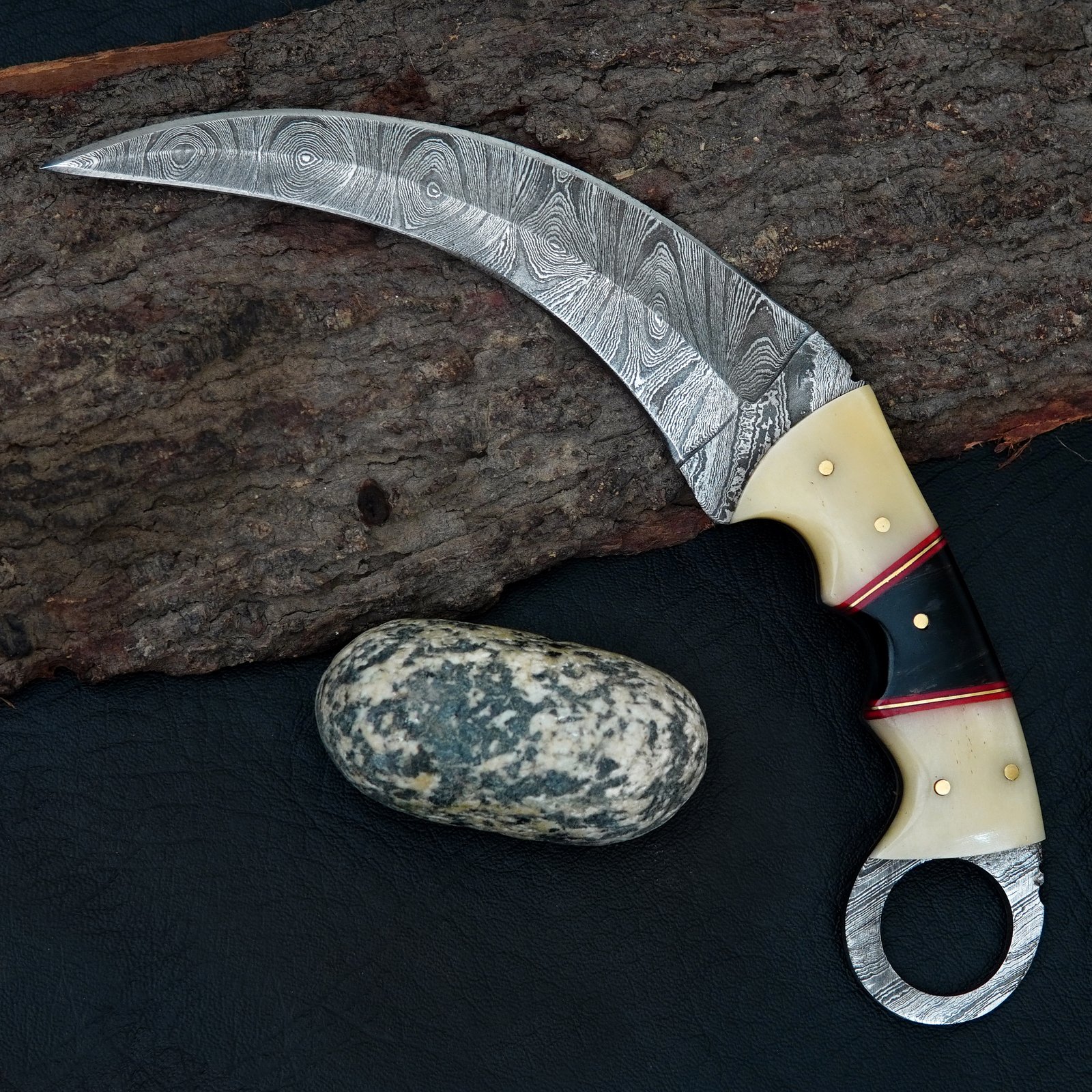 Handmade Damascus Karambit Knife: Camel Bone & Buffalo Horn Handle