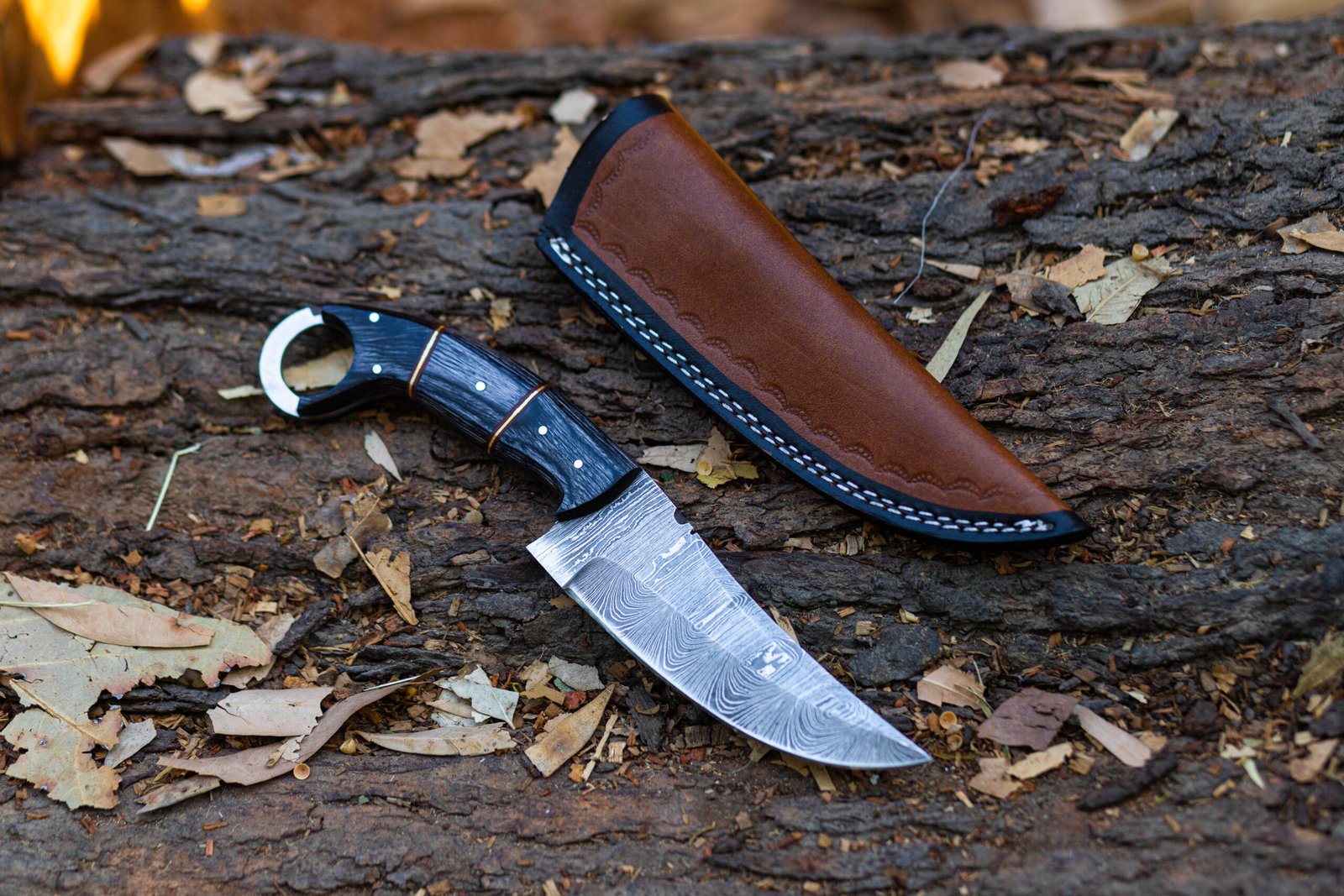 Perfect for outdoor enthusiasts, craftspeople, and collectors alike — this Damascus blade is both and visually captivating.