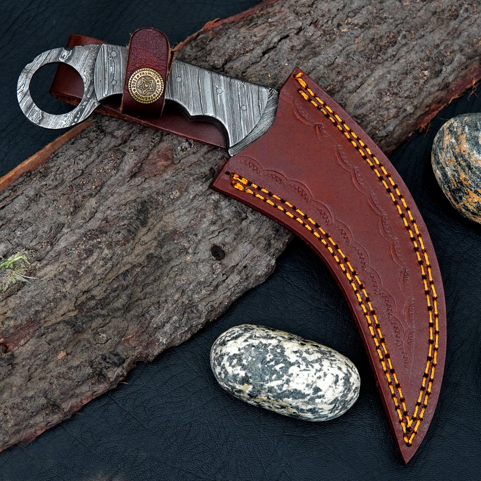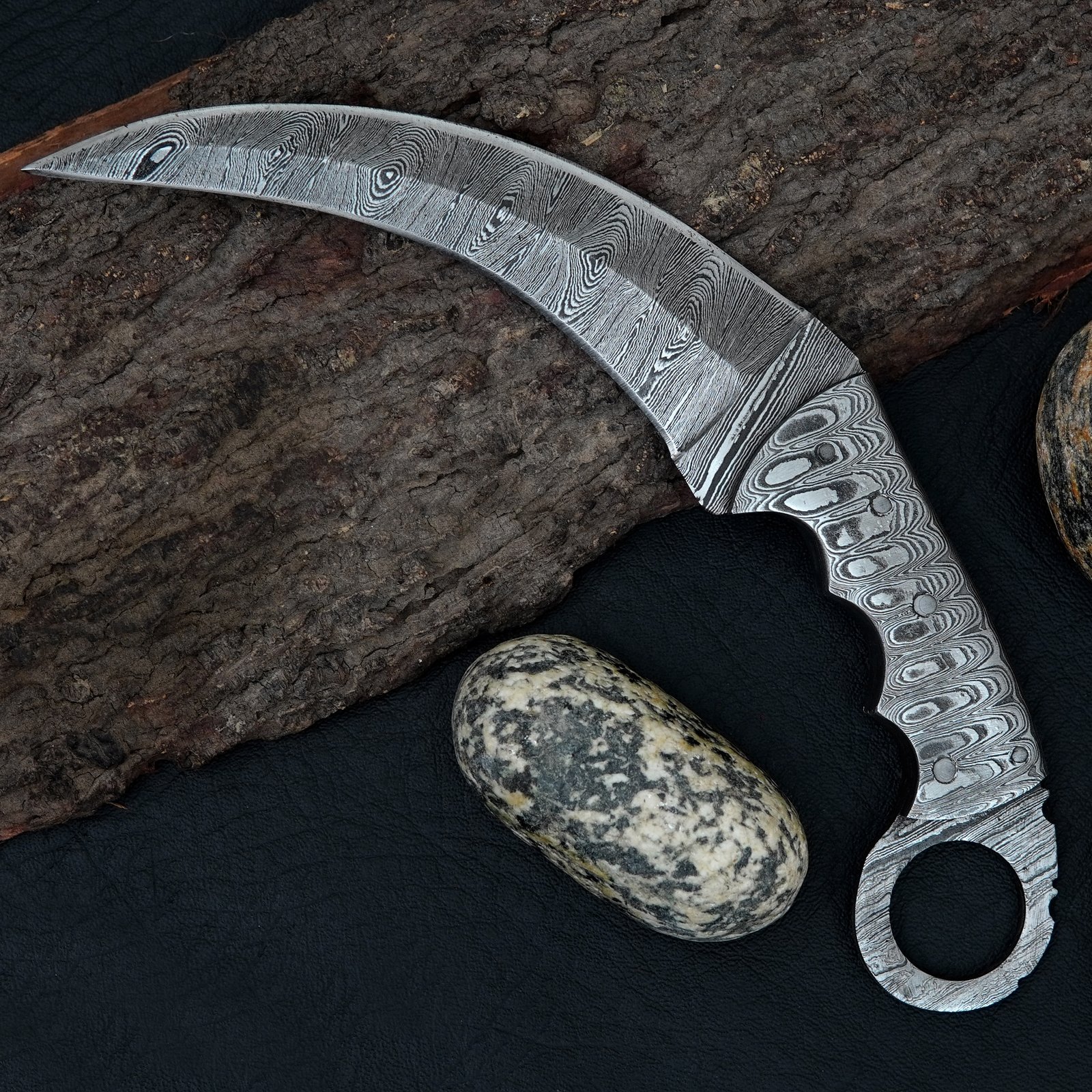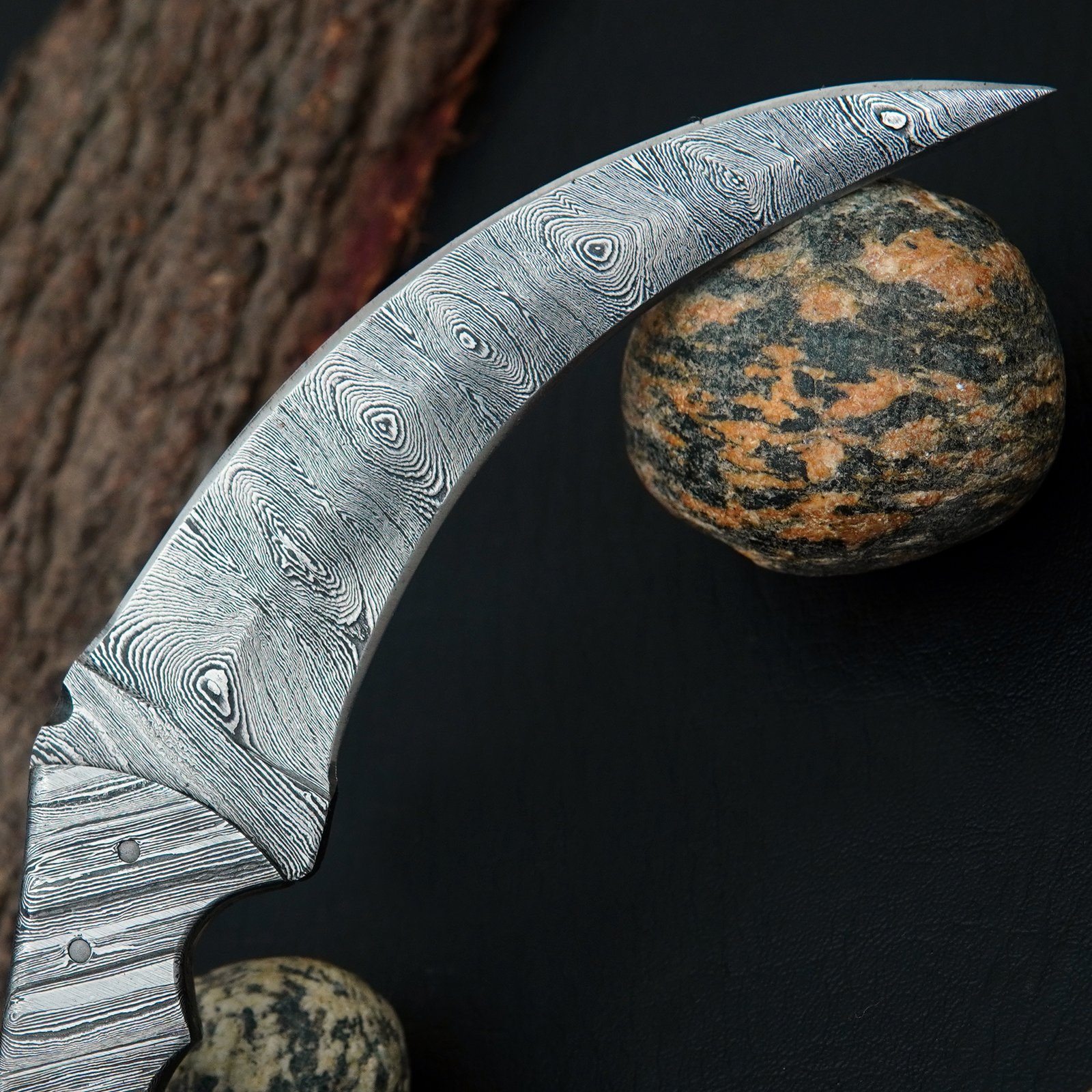 Handmade Damascus Steel Karambit Knife with Leather Sheath